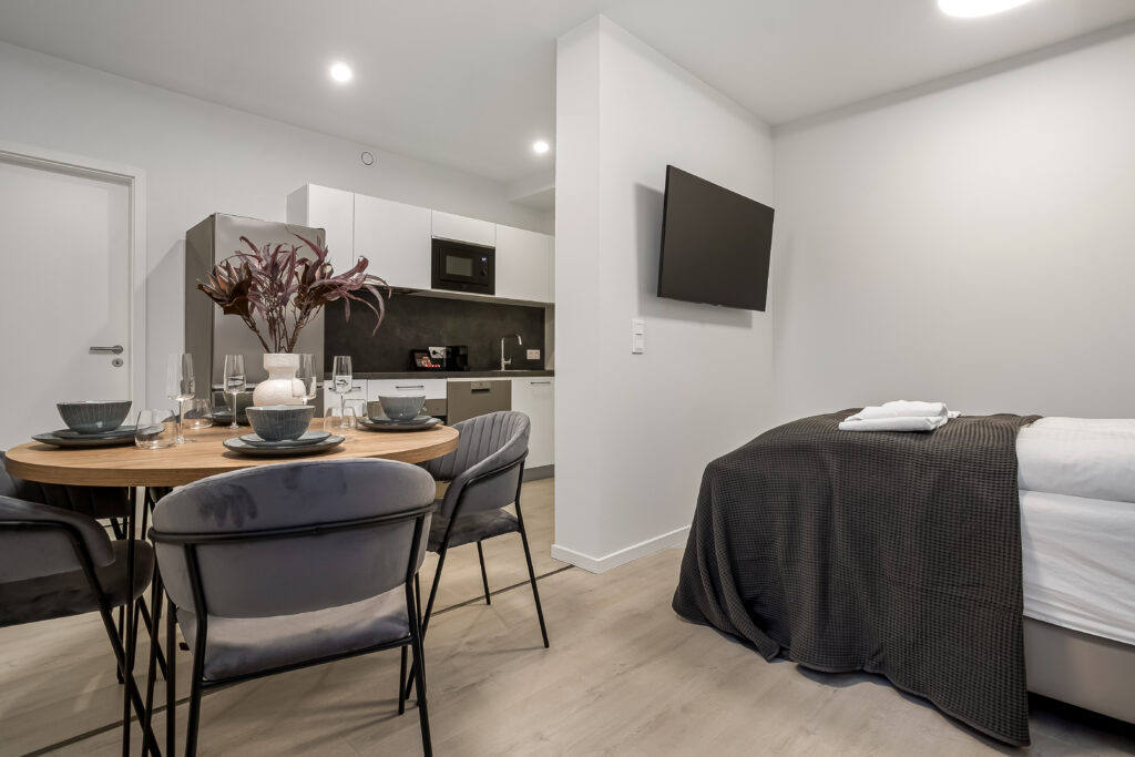 Located beside the ocean, our modern apartments offer a stylish and peaceful retreat in one of the city’s most desirable neighborhoods. Just steps from Reykjavik’s iconic landmarks, each apartment is designed to combine comfort, functionality, and a touch of luxury for every traveller.